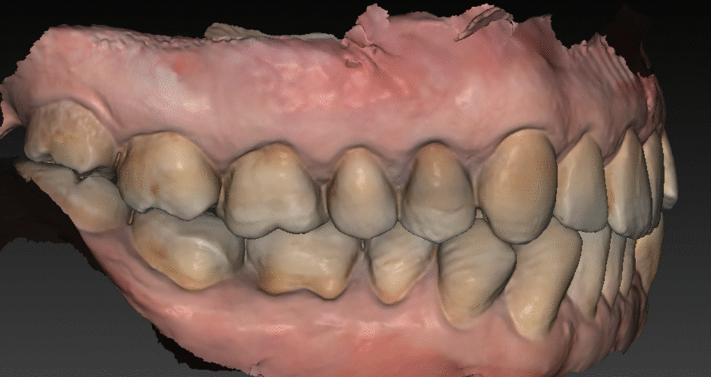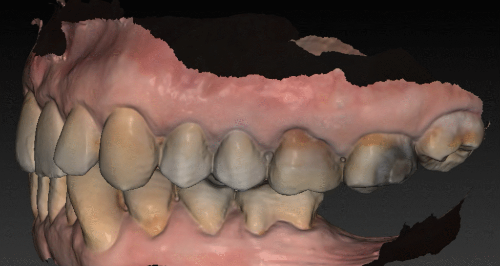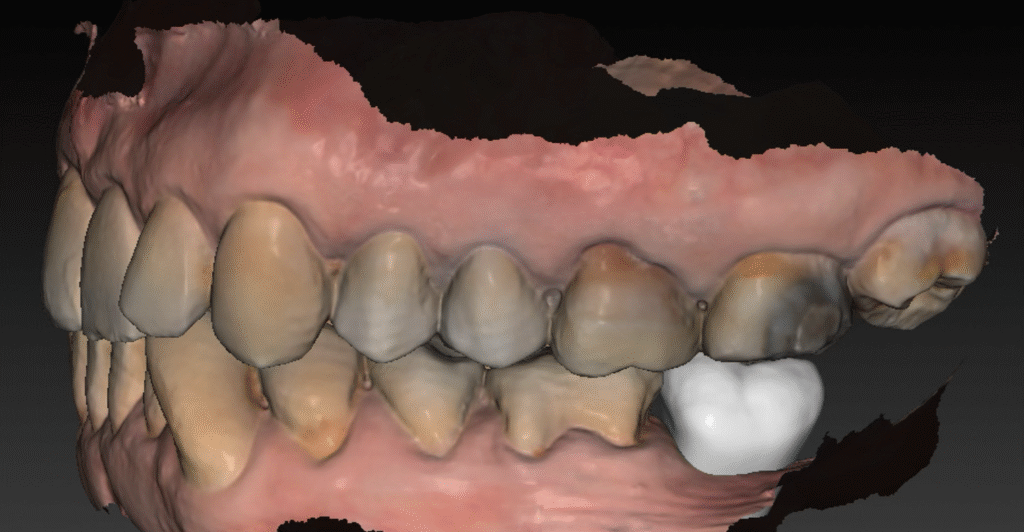 Les données numériques sont ensuite transmises au prothésiste, qui conçoit une prothèse sur-mesure, tant sur le plan fonctionnel qu’esthétique, en tenant compte de la couleur des dents naturelles, de la dynamique occlusale et du projet global du patient.