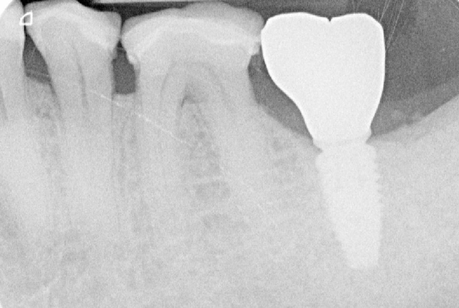 Un suivi clinique est ensuite assuré 4 mois après la pose de l’implant pour évaluer l’évolution, valider l’ostéointégration et planifier la suite du traitement prothétique.